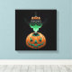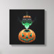 Halloween Horror Punk pockar fantasi art grönt zombie monster med Jack o lantern, pumpor och svart katt med en skallmask.