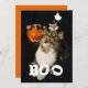 Önska dina vänner och familj en glad Halloween med ett foto på ditt husdjur! Denna söta Halloween-design visar ditt husdjursfoto med ordet "BOO" som tittar på ett spöke som dinglar en spindel med skrämda ögon. Anpassa med din egen text på baksidan i mallen eller redigera ytterligare (t.ex. ändra bakgrundsfärg, flytta element, ändra typsnitt, storlek osv.) i Designverktyget.