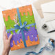 Denna Halloween-papper har Halloween-glass med orange, grönt och lila smälter iskräm och roligt Halloween sprinkles. Du kan också göra glassen mönster på inslagningen papper liten eller större.