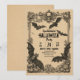 En Halloween-inbjudan i vintage-stil med utsmyckningar i gotisk stil, fladdermöss, pumpor, dödskallar och blomsterdetaljer, designad på åldrigt pergamentpapper för en spöklik och elegant look