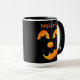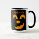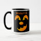 Den berömvärda Halloween mugg med en lustig jack-o'-lantern ansikte med anpassade namn.
