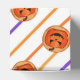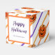 En utsökt utformning av anpassadet Halloween Favor box med en sockerkaka som illustrerar en orange jack o lantern-pumpa och orange rand på vit bakgrund.