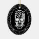 Keramiska prydnadsämnen i halloween fest visas med ett nedtryckt skalltryck på spindelnätets svarta bakgrund i färg. Anpassa det här objektet eller köp som det är. Licensierad bild
