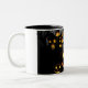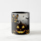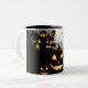 Kaffe mugg visas i en Halloween-pumputskrift.