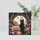 Här är ett coolt Halloween-kort med en svart katt och jack-o'-lantern. Designen är i höstfärger med orange och svarta blad och fladdermöss. . Det är ett fantastiskt Halloween-kort och passar perfekt för kusliga säsongs-hälsningar, inbjudningar eller som en gåva.