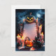 Halloween-inbjudningskort visar en festiv och pookisk charm, perfekt för att ange tonen för ett Halloween firande. Det centrala tomma utrymmet väntar på din personlig-händelseinformation, kompletterad med glödande pumpor, varm ljus och spritt höst löv. En sträng av ljus och fladderande fladdermus tillför den ärliga atmosfären som ändå bjuder in. Bakgrunden från mörken natten i himlar fyller Halloween-temat och skapar detta kort som ett perfekt val för att bjuda in gäster till ett minnesvärt Halloween fest.
