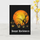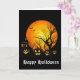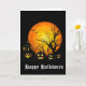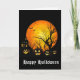 Ett hälsningskort visas med en scenutskrift från Halloween. Anpassa det här kortet eller köp som det är.