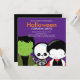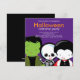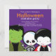 Börja din barns Halloween-fest på rätt sätt med vår söta Glad Halloween-fest inbjudan för barn med de sötaste små skelett Frankensteins & dracular-uppsättning på en lila bakgrund. Finns tillgänglig med andra kostym barn i vår butik på www.celebrateitholidays.com. Anpassa med din personliga information & du är redo att gå. © Zenware Designs