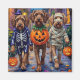 Bedårande strävhåriga pointing griffoner utklädda i lekfulla halloween-kostymer bär pumpakorgar medan de går runt och samlar godis under månsken. Denna festliga design framhäver rasens lurviga päls, själsfulla ögon och vänliga personlighet, och fångar perfekt den spökliga men roliga atmosfären på halloween-kvällen. En hjärtvärmande hyllning för hundälskare och halloween-fans.