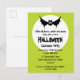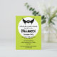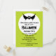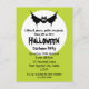 Grön Halloween kostymfest inbjudan med en stor vit måne och en svart fladdermus högst upp. All text är mallar för att göra det enkelt att lägga till dina egna detaljer.