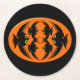 Den här pappra underlägg i fantastisk har en orange oval med sex kråkor. Varje kråka har gult öga med svarta elever och utsträckt vingar. Kråkorna flyger mot varandra och bildar en ovalform. Bakgrunden är svart.