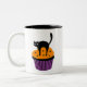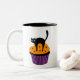 Gott design av en cupkaka med en svart Halloween-katt. Snyggtens gotiska hallopoldesign med ett svartvitt och orange tema.