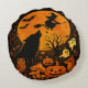 Halloween kvast flygande häxa och måne rund kudde