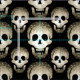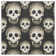 Halloween Laughing-Döskallar på svart bakgrund. Designad av Cheeky Witch® Besök Cheeky Witch Fabric Store om du vill se massor av roligtar för giriga häxor, häxor och pagans. Perfekt för vaskar och pagankläder, klänningar, rune- och tarotpåsar, kuddar och kuddar, ansikte-överdrag, masker och många fler trollformler. Inte bara för Halloween!