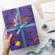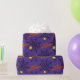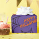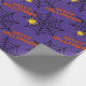 Den här snygga inslagningen papper för Halloween har spindelnät och spindlar på lilans bakgrund. Orange Happy halloween.