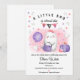 En liten spöke är snart här. Halloween Little Boo Baby Girl Födelsedagsinbjudan med en söt akvarell babyflicka spöke, pumpor, hjärtan, stjärnor, ballong. Baby shower inbjudan rosa och lila redigerbar mall. 3 söta stjärnor på baksidan.