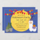 Cute white llama i en lila häxhatt med en jack o'lantern. Färgfull höst party flagga, fullt måne och blomkaktus för en söt roligt Halloween. Underbar för ett barns party.