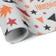 "Halloween-Löv och Pumpkin Smakless Gift Wrap" förenar pumpor, fallande löv och stjärnor, med fet Halloween-text, som skapar ett mysigt och skämt för presenter.
