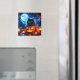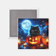 Magneten visas med en Halloween-konsttryck av en svart katt som sitter i pumpor.