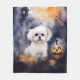 Halloween Maltese with Pumpkins Scary Fleecefilt
