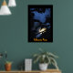 Den här poster Halloween har ett fullt som lyfter genom träd för att bilda en intressant abstrakt mönster mot ett djupt blå himmel.