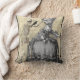 En mörk romantisk gotsk kollage av en Halloween maskerad boll, med vintage bild av ett skelett, en Fransk 1800-talets mode-platta, ljusstativ, en petrifierad katt. På baksidan av kudden är en candelabra, läggs både fram och bak över en bakgrund av ett faktiskt handskrivet vittnesmål från Salem Witch-försöken.