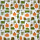 Denna Halloween-temade mönster har jack-o-lyktor pumpor och funkyns kvadratiska former i orange, grönt och brunt. Inspicerad av atomtidskonst från 1940- och 1950-talet.