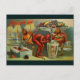 Ett vackert vykort för vintage med djävulen och pumptecken som förbereder Halloween-middagen.