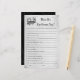 Lägg till roligt till dina halloween-möhippor med den här Personligen "Vad sa han?"-spel. Perfekt för att hålla isär möhippor är det här spelet ett roligt sätt att se hur väl bruden känner hennes rumpa. Ett underbart tillägg till dina möhippa-idéer eller goda möhippor, särskilt för dem som planerar en god möhippa. Temat "Til Dödsus Us" och "Till Döden gör oss del" ger perfekt till firande.