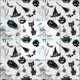 Halloween-objekt ritade på papper och kalkerades sedan i Illustrator för att skapa mönster.