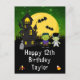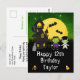 Detta roliga och skrämmande födelsedagskort kan anpassas med ett namn eller titel, till exempel dotter, sondotter, systerdotter, vän etc. Den har söta Frankenstein-monster bredvid ett krokigt spökhus. I bakgrunden syns en fullmåne med fladdermöss och en grön natthimmel med stjärnor. Texten kombinerar dekorativa och serif-teckensnitt för en stilren och modern look. Detta är perfekt för Halloween.