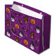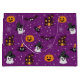 Halloween träffade mönster i lila med spöke, fladdermus, spindlar, pumpa och spökhuspresentsäckar.
