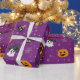 Halloween träffade mönster i lila med spöke, fladdermus, spindlar, pumpa och spökhus.