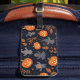 En bagagetagg med den snyggt Halloween-temade mönster med spöken, pumpor och uggla. Den är tillverkad med tåliga material och ett justerbart band och kombinerar praktisk användning med stil som är festive. Identifiera din väska på ett enkelt sätt medan du tillför en pinne av Halloween-andan till dina resor.