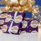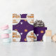 Detta läskiga Halloween-inpackningspapper är dekorerat med roliga pumpor, spöken, fladdermöss och skrämmande ögon på en mörklila bakgrund som imiterar Halloween-natten.