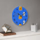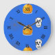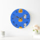Halloween mönster med spindelnät, pumphuvud och skalle på blå bakgrund.