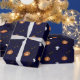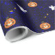 Denna vackra Halloween-papper är dekorerad med roliga pumpor, spöken, fladdermus och läskigt ögon på en mörk blått bakgrund med lätt glitter. Perfekt att fira Halloween-säsongen med bra gåvor!