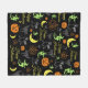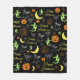 Söt och kuslig mönstrad filt för Halloween. Svart bakgrund med en färgstark "Happy Halloween", pumpa, spöke, häxa, måne, svart katt mönster.