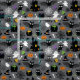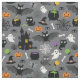 Lustigt Halloween mönster med fladdermus, katter, spindlar, spöken, pumpor, hemsökt hus, lollipops.