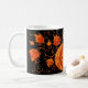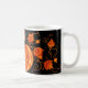 Dramatisk handdragen Jack-o-Lantern Pumpkin och Löv på svart för Halloween-firande på mugg som kan vara personlig med ett meddelande, namn eller initialer.