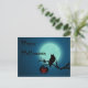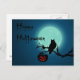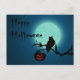 Halloween Natt med uggla och pumpa vid gren framför måne.