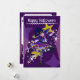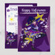 Söt Halloween Neko-häxa på ett lila semesterkort på framsidan. På baksidan finns inbjudningstexten som kan anpassas av kunderna.