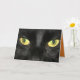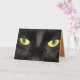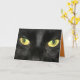 Fantastisk, närbild av en svart kattes ögon finns på detta hälsningskort från Halloween. Inuti kortet står: "Har min Öga på dig! Happy halloween". Ett underbart sätt att önska familj och vänner ett Happy halloween!