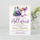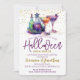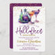 En underbar lila och guld halloween Open House-inbjudan. Den här lilan och grönten för roligt har en soptik magisk potion flaskor och två cocktail-glas. Enkel att anpassa med din egen halloween fest-information.