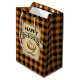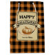 happy halloween buffel orange och svart pläderade mönster på apoteksetiketten stil med anpassningsbar text som du lätt kan fylla i. Glad helg!
