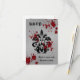 OSA kort för ett tema Halloween, Vampyre eller Gothic bröllop. Dessa har en elegant av Viktoriansk dammmotiv i svart med blodstänk på en ljusgrungande grått-bakgrund. Lägg till 2 namn längst fram. Texten på baksidan kan ändras eller lämnas som den är.