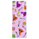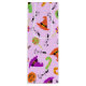 Fun Halloween wine gift bag with witch's hat, candies and pumpkins on a light purple background. Perfect for presenting a bottle of wine to someone who has a birthday around Halloween time or a gift for the host of a Halloween party.