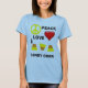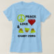 En söt design som säger Peace Kärlek och Candy corn. Jag skapade det här för att jag är för lat för att kom upp med en Halloween-dräkt i år, men ville bära något. Denna utformning fungerar på de flesta färg utom vita på grund av arm och ben i candy corn. Jag har också en design med mörkare ben och arm som fungerar för en vit skjorta. Vill du ändra texten färg? Eller teckensnittet stil? Klicka på Anpassa den. Om du klickar på det här alternativet kan du också flytta sak runt. Som till exempel om du vill flytta Kärlek till toppen och Peace till mitten.