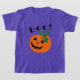 Det här trendiget och den sansade orangen och den svarta lilan i Jack o lantern har ett lycklig leende på ansikte och Boo! skriven ovan. Du kan ändra texten framtill och tillbaka till ett namn eller ett meddelande som du väljer. Det finns mycket mer stilar och färg hos barn och vuxarna.