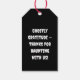 Show your guests some ghostly gratitude with these Halloween party favor tags that read, “Ghostly gratitude — thanks for haunting with us!” Featuring a seamless pattern of playful white ghosts on a sleek black background, these tags add the perfect spooky-chic touch to your treat bags, party favors, or gift boxes. Easy to customize with names or event details, they’re ideal for Halloween parties, classroom celebrations, or themed weddings. A stylish and festive way to thank guests for making your night a scream!